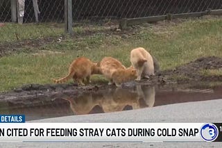 An Ohio man “was cited for feeding stray cats behind a building he owns during a recent stretch of harsh winter weather.”