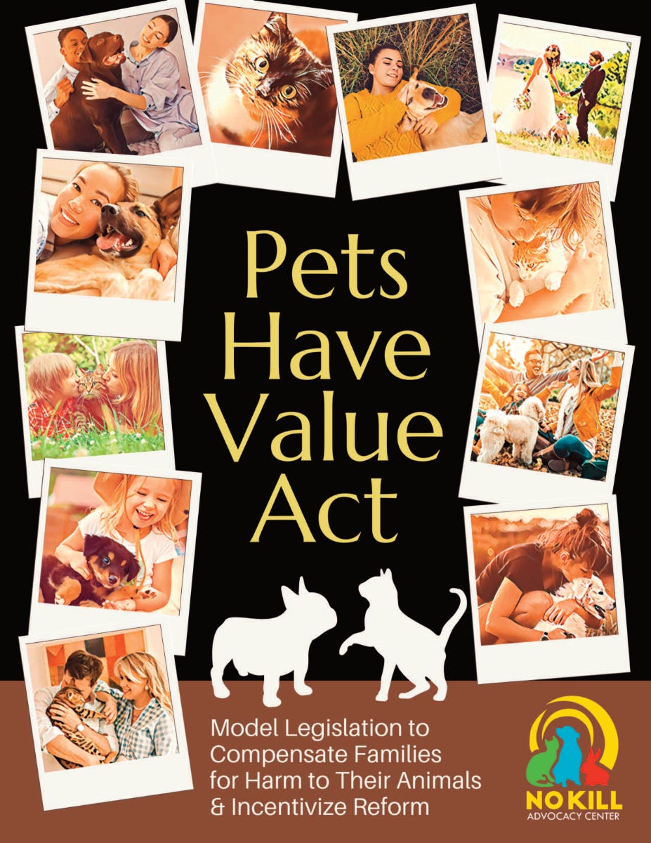Introducing the Pets Have Value Act — model legislation from The No Kill Advocacy Center to compensate families for harm to their animals and to incentivize reform at shelters, veterinarian offices, pet food companies, and other pet-related businesses.